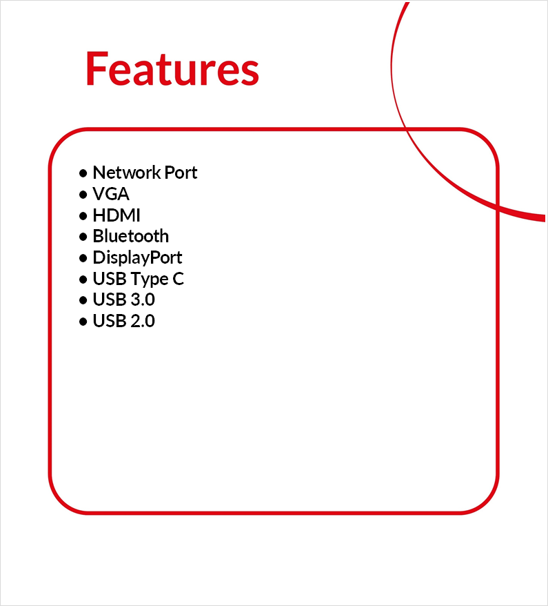 USB WiFi Adapter, Network Port, VGA, HDMI, Bluetooth, DisplayPort, USB Type C, USB 3.0, USB 2.0,