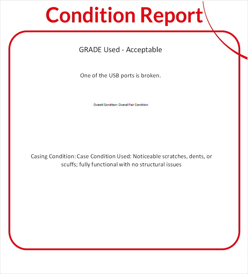• Additional Notes: One of the USB ports is broken.