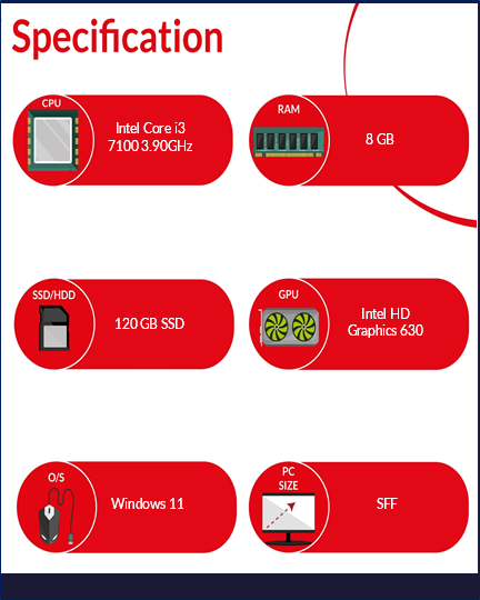 Dell Vostro 3268 Windows 11 SFF PC Intel Core i3 7100 3GHz 8GB 120GB SSD WiFi