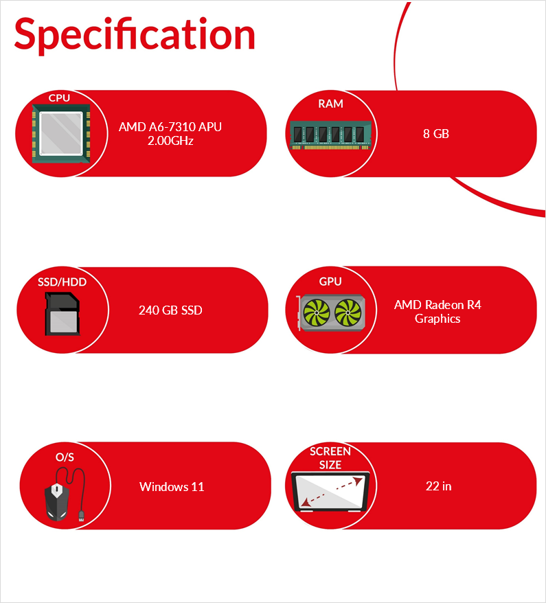 HP AIO 22 b060na Windows 11 22 in AIO AMD A6 7310 8GB RAM 240GB SSD USB 3.0 HDMI