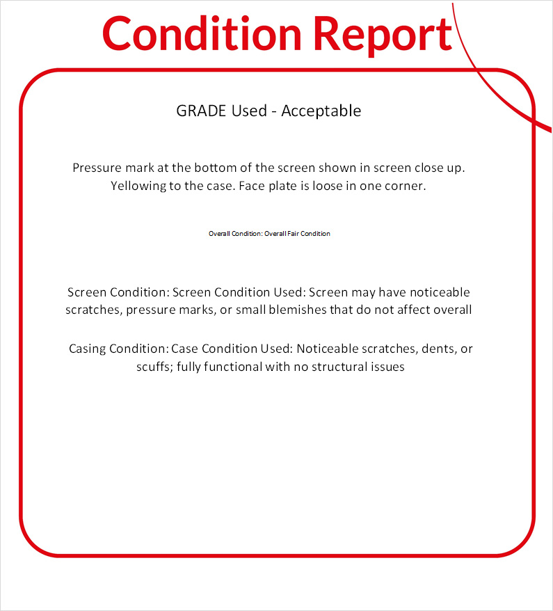 • Screen Condition Used: Screen may have noticeable scratches, pressure marks, or small blemishes that do not affect overall functionality