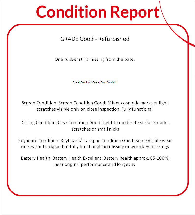 • Keyboard/Trackpad Condition Good: Some visible wear on keys or trackpad but fully functional; no missing or worn key markings